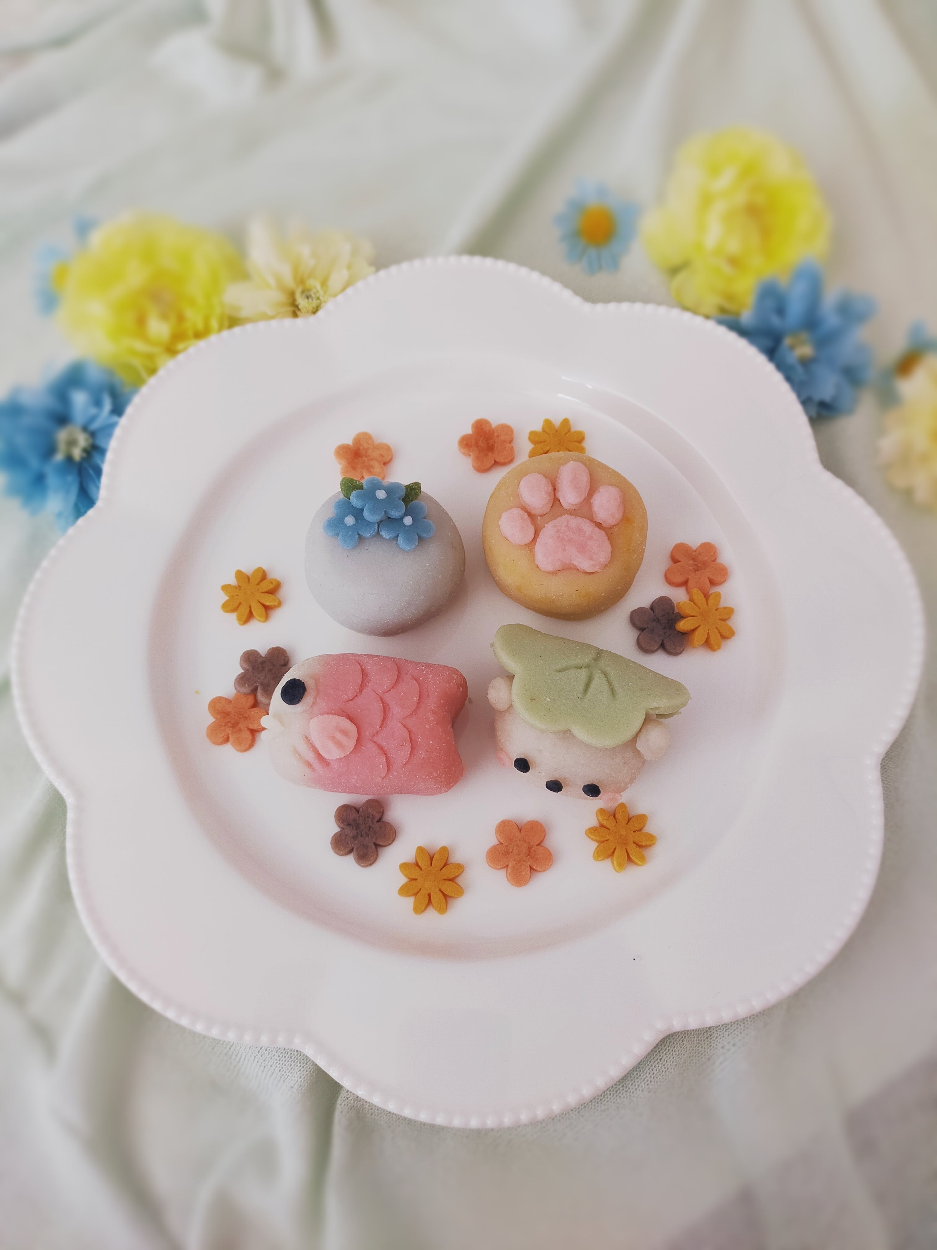 かぼちゃ→肉球と青の花